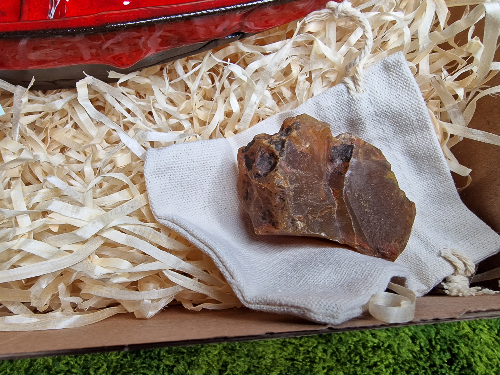 Surowa bryłka karneolu – naturalny kamień żywiołu ognia,