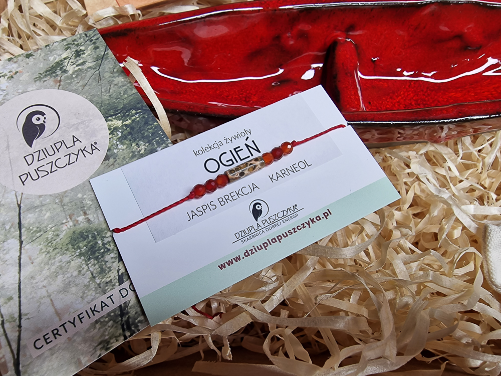 Bransoletkę mocy – Żywioł OGNIA (karneol & jaspis brekcja) – regulowaną, ręcznie wykonaną, zapakowaną z Certyfikatem Dobrej Energii