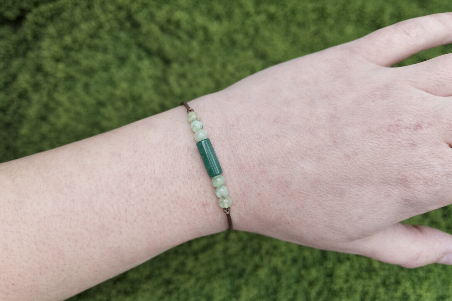 Bransoletkę mocy – Żywioł ZIEMI (agat mszysty & jadeit) – ręcznie wykonaną, regulowaną, zapakowaną w linany woreczek, z Certyfikatem Dobrej Energii