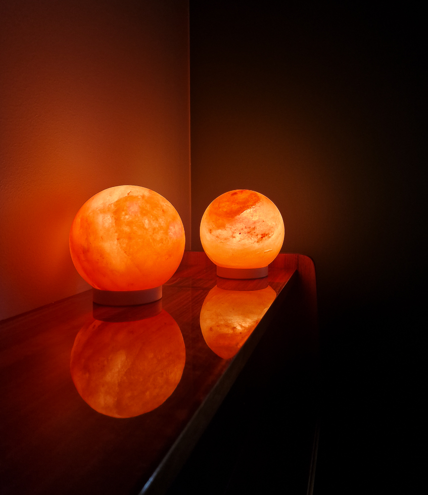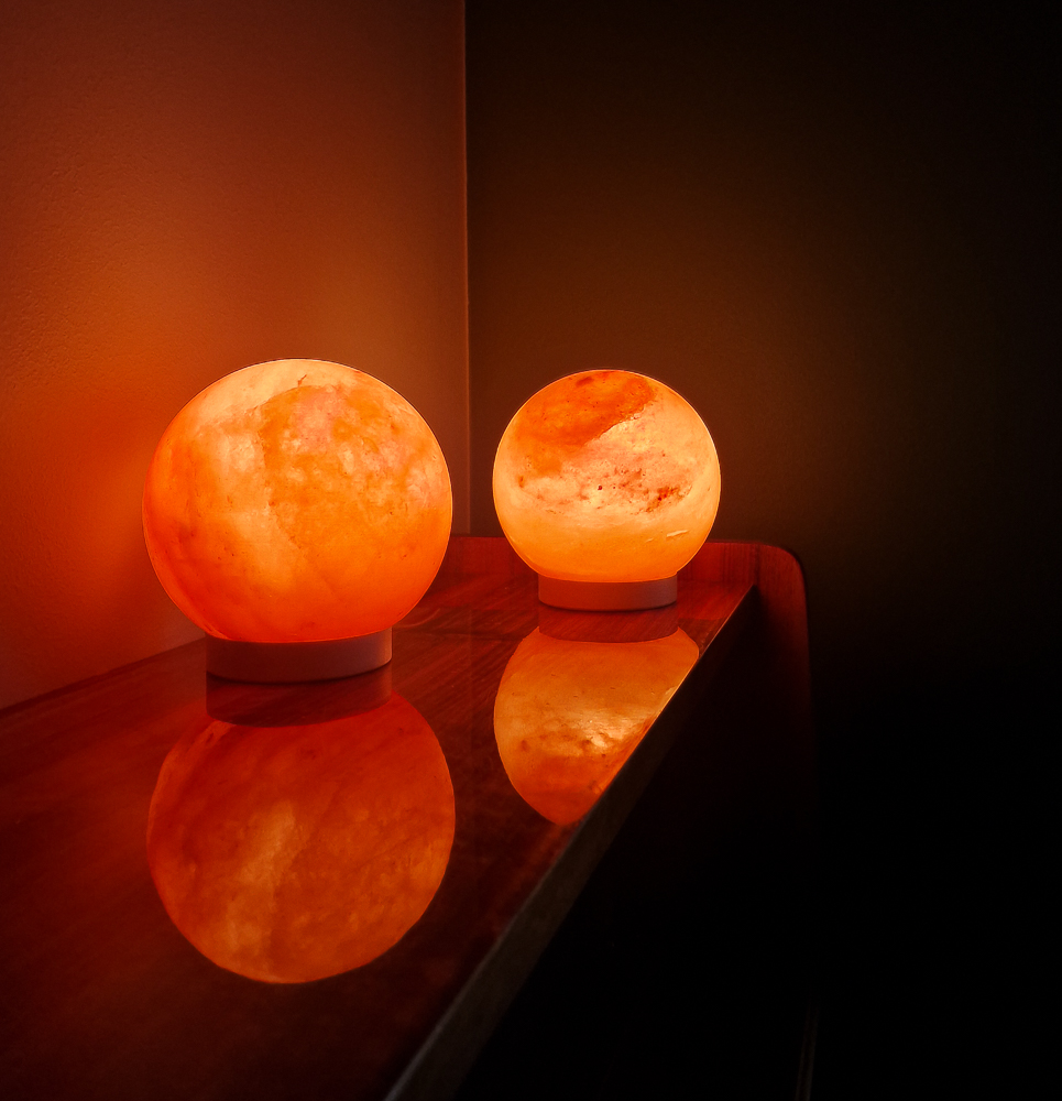 Każda lampa jest inna. Sól kamienna ma swoją własną strukturę, różne przejścia kolorów – od miodowego złota po głębsze bursztyny.