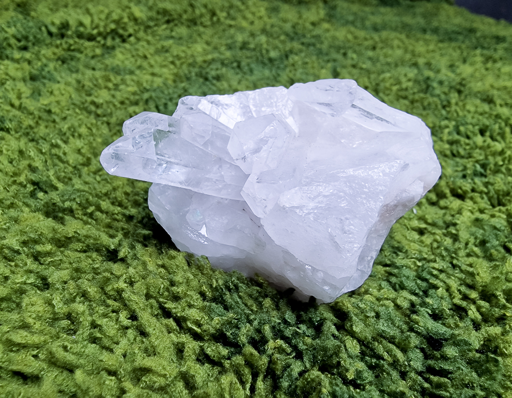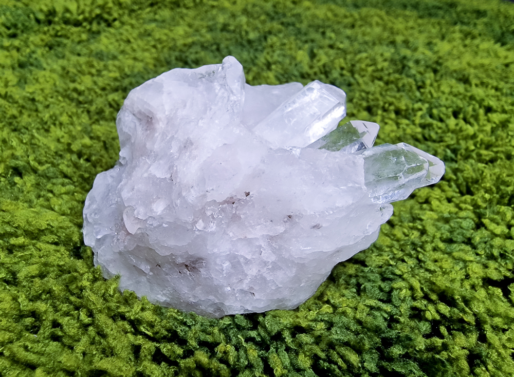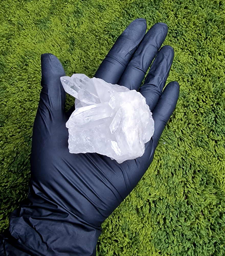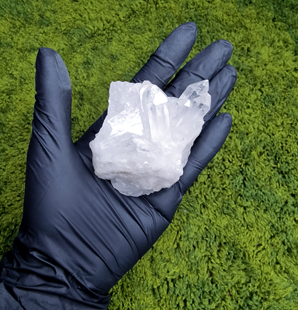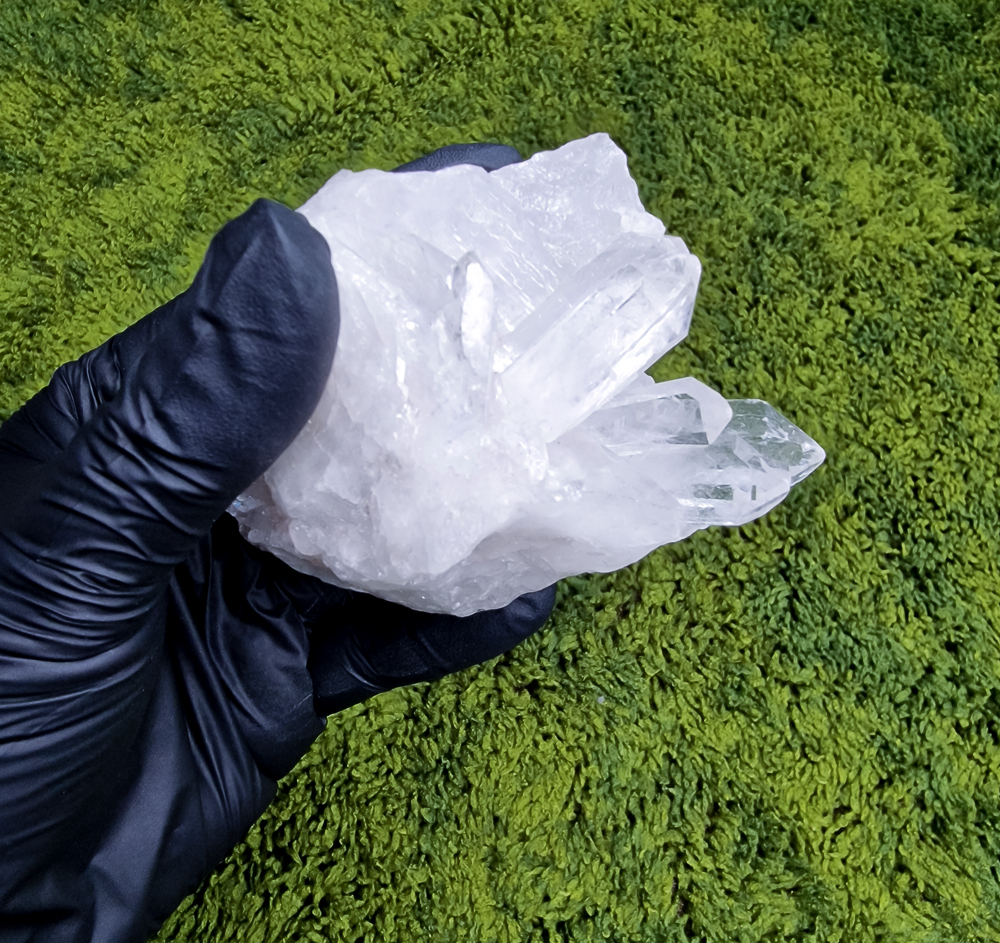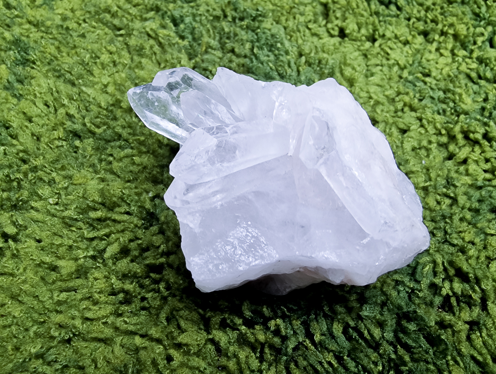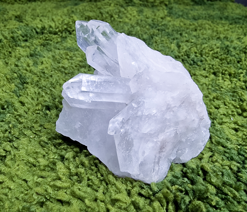 Ta mała szczotka kryształu górskiego to naturalny klaster złożony z kilku kryształów wyrastających ze wspólnej podstawy. Pomimo niewielkich rozmiarów, forma szczotki sprawia, że kamień ma bardzo dobrze rozproszoną, oczyszczającą energię.