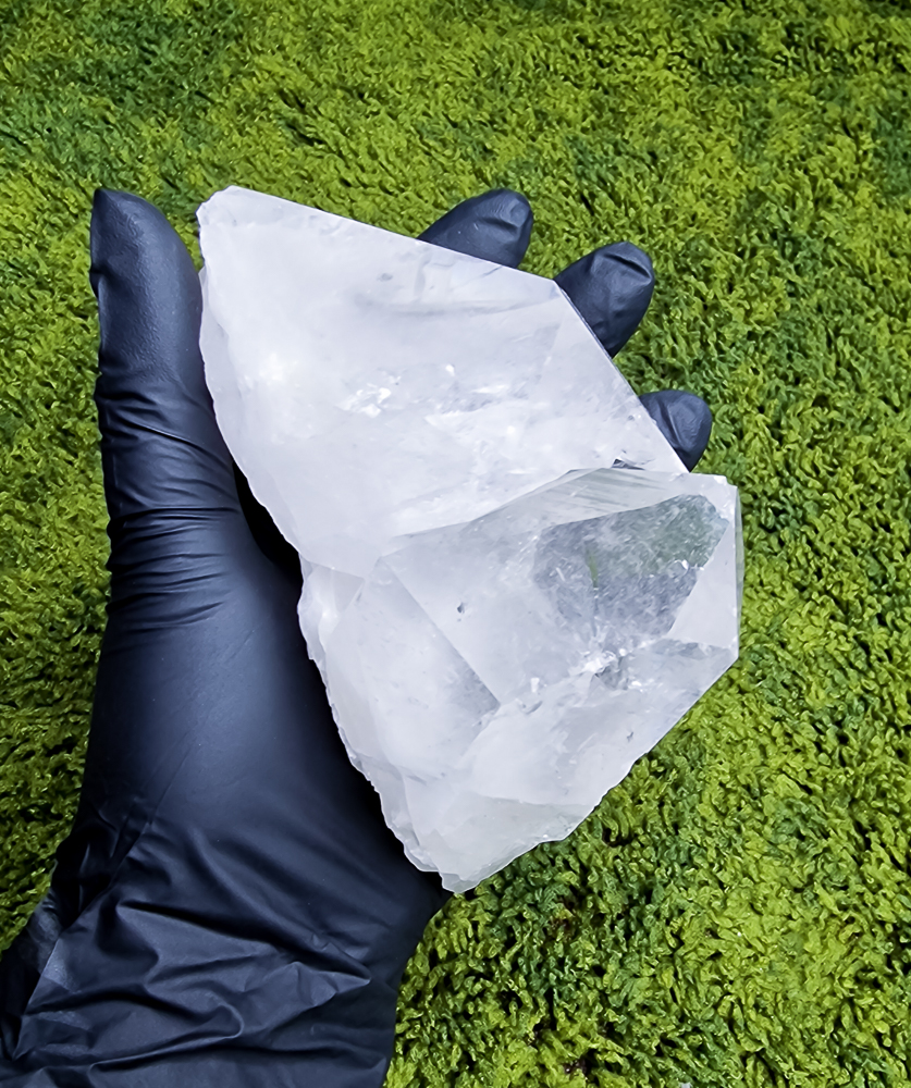 Kryształ zachwyca przejrzystością i surowym pięknem – widoczne są naturalne struktury wzrostu, delikatne mleczne partie oraz klarowne płaszczyzny, które pięknie łapią światło. Brak jakiejkolwiek obróbki sprawia, że kamień zachował swój pierwotny charakter i autentyczną moc.